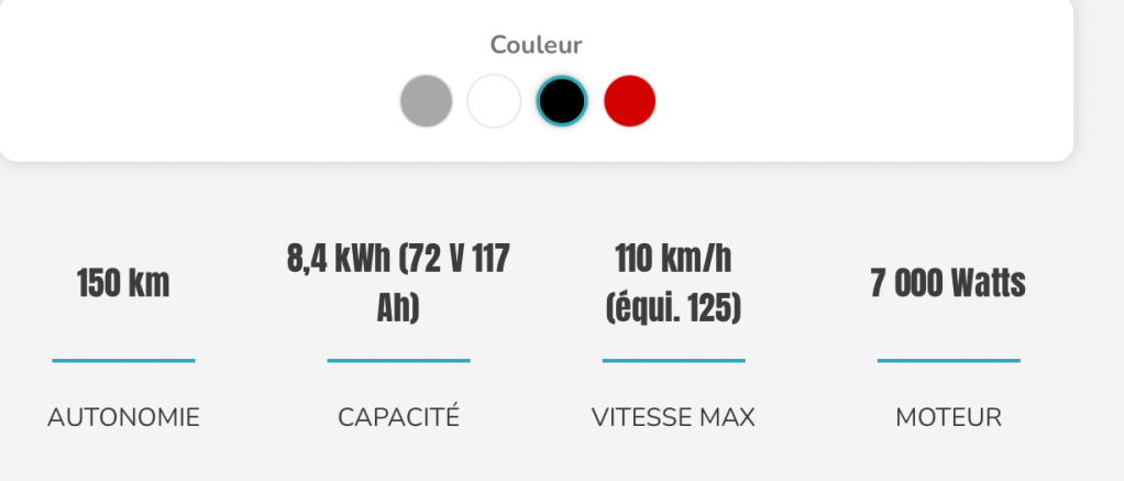 Le e-trax offre à son conducteur une vitesse de 110 km/h pour une autonomie de 130km. Proposé avec un moteur électrique puissant de 7000 Watts (batterie fixe), la vitesse la reprise et la puissance du e-trax permettront d’affronter tout type de circulation, que ce soit pour des trajets urbains ou péri-urbains.